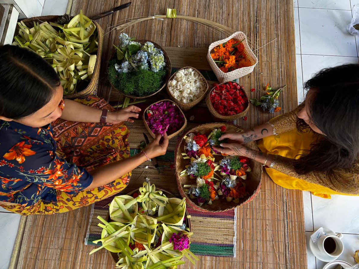 ▪️ Tự tay làm những chiếc Canang Sari: đây là những bát hoa để dâng đền, những bát hoa này đóng vai trò rất quan trọng trong đạo Hindu giáo.