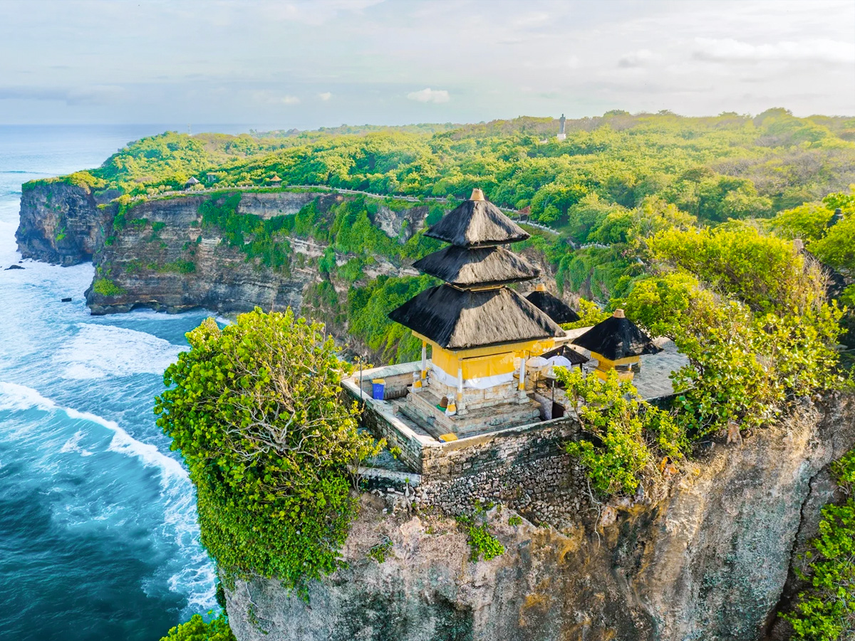 ▪️ Đền Uluwatu: còn có tên khác là Pura Luhur Uluwatu, là một trong những ngôi đền cổ xưa nhất ở Bali, xây dựng từ thế kỷ thứ 10, nằm tọa lạc trên vách núi gồ ghề ven biển. Được chạm khắc từ đá san hô đen, ngôi đền nằm trên mỏm của vách đá cao 76m, nhìn ra biển Java. Một nơi hùng vĩ rất phù hợp để ngắm mặt trời lặn trên biển.