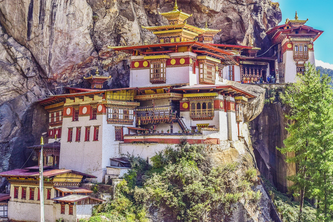 ▪️ Biểu tượng danh thắng quan trọng nhất của Bhutan – Taktshang – được mệnh danh là “Hang Cọp” được xây dựng treo leo trên một vách núi cách thung lũng Paro 300m. Nơi đây được khám phá đầu tiên bởi Guru Rimpoche, sáng lập của Mật Tông Phật giáo tại những quốc gia Hy Mã Lạp Sơn, vào thế kỉ thứ 8. Tương truyền rằng Đức Liên Hoa Sinh cưỡi trên lưng con hổ trắng và đã thiền tại đây trong 3 năm 3 tháng 3 tuần. Ngôi đền đầu tiên được xây vào thế kỉ thứ 17, nhưng bi kịch thay, nó đã bị thiêu rụi vào năm 1998. Như một con chim phượng hoàng kiêu hãnh, ngôi đền được phục chế hoàn chỉnh nhất vào năm 2003. Taktshang được coi là một trong 10 nơi linh thiêng trong thế giới phật giáo. Quý khách có thể tham quan tới 3 ngôi đền khác nhau trong khu đền Taktshang.
