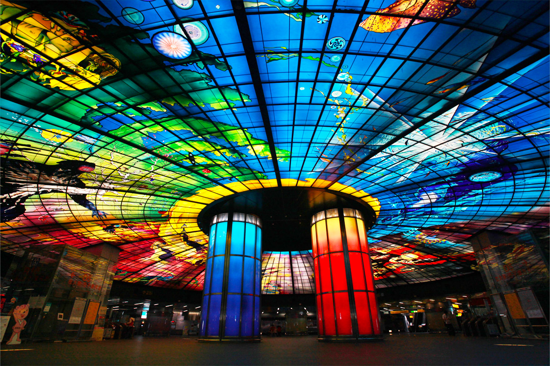 ▪️ “Trạm tàu điện ngầm Mỹ Lệ” - Formosa Boulevard là một công nghệ nghệ thuật bằng 4.500 tấm kính lớn nhất thế giới. Nhờ hiệu ứng kính vạn hoa đầy ấn tượng, khu vực nhà ga thực sự là điểm lý tưởng để tổ chức các lễ cưới.