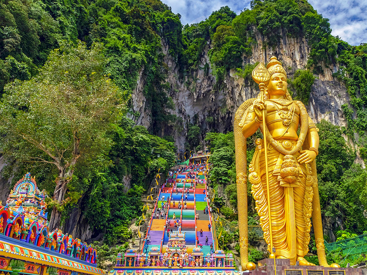 ▪️ Động Batu: là hang động được đặt theo tên của dòng sông Sungai Batu chảy qua đồi bao gồm loạt ngôi đền và hang động trên một ngọn đồi đá vôi. Quần thể hang động đá vôi này là một trong những điểm thu hút khách du lịch lớn nhất của đất nước, nổi bật với bức tượng thần Murugan cao 42m và 272 bậc thang sắc màu dẫn lên quần thể hang động kỳ vĩ.