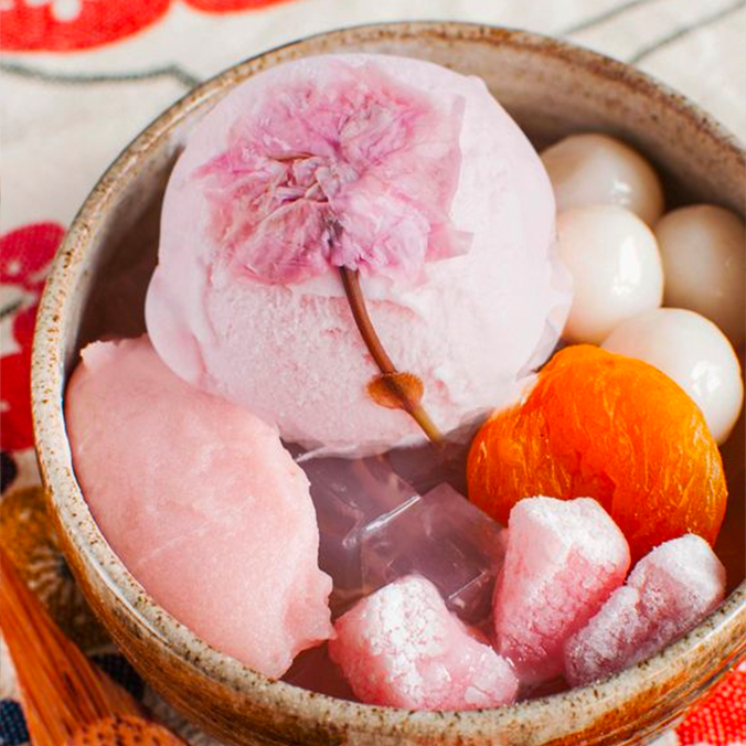 Điểm đặc biệt làm nên sự hấp dẫn cho Sakura Anmitsu chính là viên kem có hoa anh đào nguyên chất và hoa anh đào muối xay nhuyễn. Vị mặn của hoa anh đào muối và vị ngọt của viên kem tạo ra sự kết hợp vô cùng lạ miệng.