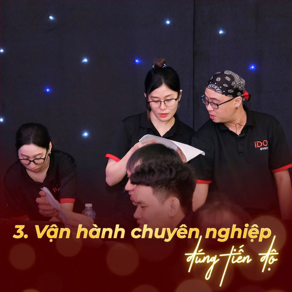 Dù quy mô nhỏ, IDO vẫn triển khai theo quy trình chuẩn 5 bước, đảm bảo buổi tiệc chỉn chu, đúng giờ và đầy cảm xúc – vì sự chuyên nghiệp không phụ thuộc vào ngân sách.