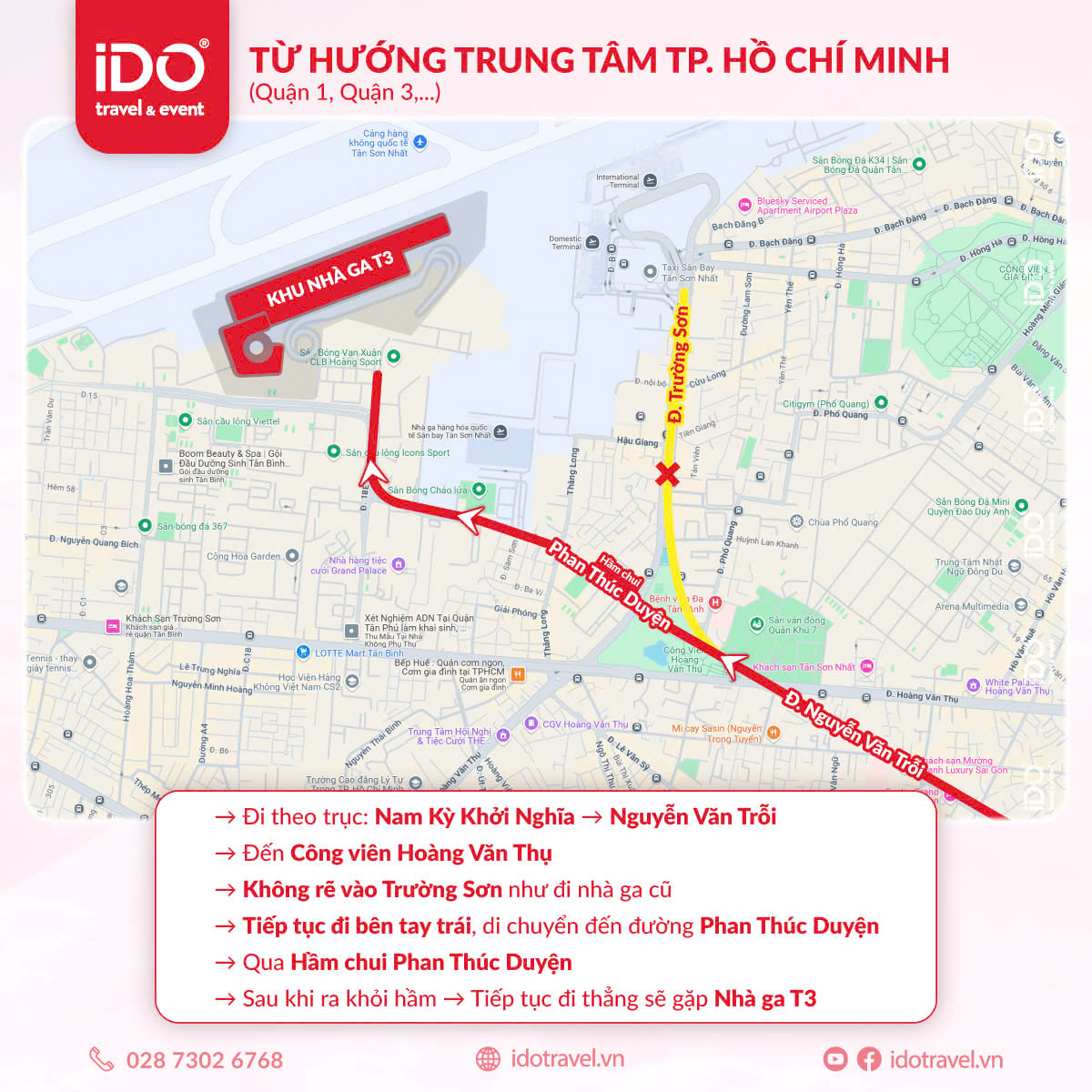 ▪️ Từ trung tâm TP.HCM có thể đi hướng đường Nam Kỳ Khởi Nghĩa - đường Nguyễn Văn Trỗi - công viên Hoàng Văn Thụ chạy hướng bên trái, vào hầm chui Phan Thúc Duyện - đường nối Trần Quốc Hoàn đến nhà ga T3.
