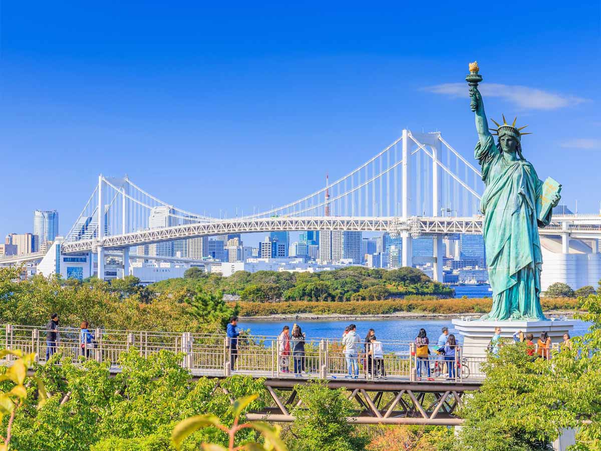 ▪️ Đảo Nhân tạo Odaiba là một công trình "lấp biển" được xây dựng từ thời Edo. Công trình này nhìn ra cây cầu nổi danh Rainbow Bridge ở Vịnh Tokyo với Cầu Cầu Vồng -
