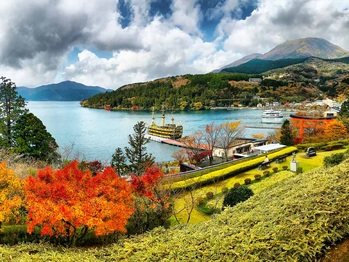▪️ Du thuyền trên hồ Ashi: Nằm cạnh núi Phú Sĩ, hồ Ashi là một hồ nước nằm trên miệng núi lửa trong vùng núi lửa Hakone – Nhật Bản. Đến Ashi, du khách có thể du lãm trên mặt hồ bằng tàu Cruise, thưởng thức cảnh đẹp quanh hồ và ngắm nhìn núi Phú Sĩ ở phía xa xa.
